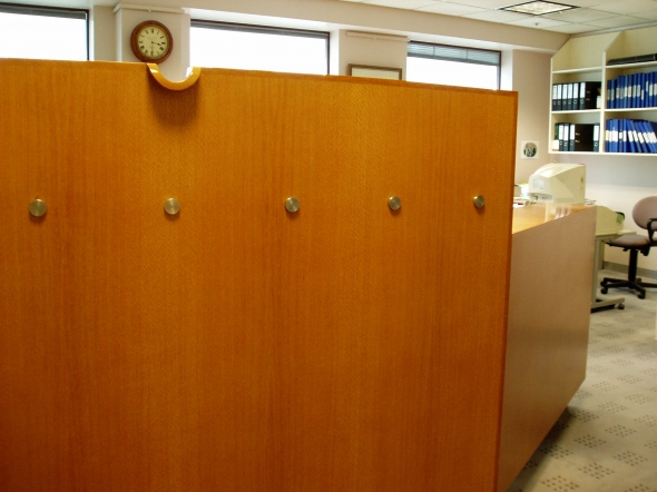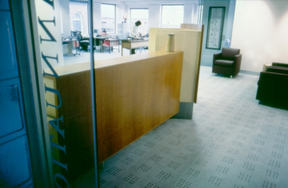 A furniture designer, known for both his attention to detail and his rather witty three-dimensional signatures, Lueckenhausens stamp is clear, but his knowledge and respect for media and processes other than his own have enabled him to bring in and unify functional and decorative shapes and surfaces which, in different hands, could have been confusing; particularly in such small spaces. Lueckenhausen is also a former president of the Crafts Council of Australia, and he praises Curran as a most generous client, committed to quality and collaborative processes between design disciplines and practice. The risk though, with incorporating the work of several artists/craftspeople in small spaces, is visual confusion, where disparate elements compete for attention. Lueckenhausen had avoided this by maintaining control over the design of all the interior fittings, and also by limiting the interior materials to glass, brushed stainless steel and timber silky oak and silver ash. Continuity is further maintained by the use of a varied four-square grid throughout the building, on the stone, timber and carpet floors and in other fittings."