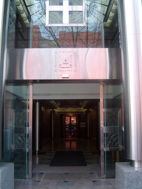 A furniture designer, known for both his attention to detail and his rather witty three-dimensional signatures, Lueckenhausen’s stamp is clear, but his knowledge and respect for media and processes other than his own have enabled him to bring in and unify functional and decorative shapes and surfaces which, in different hands, could have been confusing; particularly in such small spaces. Lueckenhausen is also a former president of the Crafts Council of Australia, and he praises Curran as ‘a most generous client’, committed to quality and collaborative processes between design disciplines and practice. The risk though, with incorporating the work of several artists/craftspeople in small spaces, is visual confusion, where disparate elements compete for attention. Lueckenhausen had avoided this by maintaining control over the design of all the interior fittings, and also by limiting the interior materials to glass, brushed stainless steel and timber – silky oak and silver ash. Continuity is further maintained by the use of a varied four-square grid throughout the building, on the stone, timber and carpet floors and in other fittings."