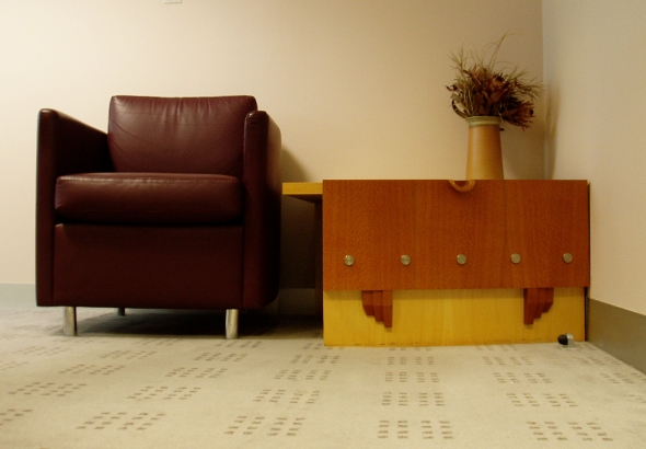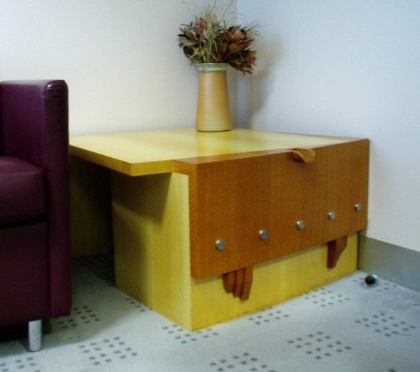 An essence of caricature and humour usually works itself into the narrative of the objects Lueckenhausen designs, which introduces a check to the danger of the work taking itself too seriously. They have their serious side but they, in common with so much of his work, have a humorous / self-deprecatory side as well. In this case this might also be a factor of relative scale. Sitting near the guardian desks in both offices, their relatively small size in the shadow of the imposing desks robs them a little of their gravitas. That led to the cute title with the suggestion of look at me, Im helping too.