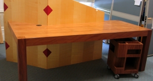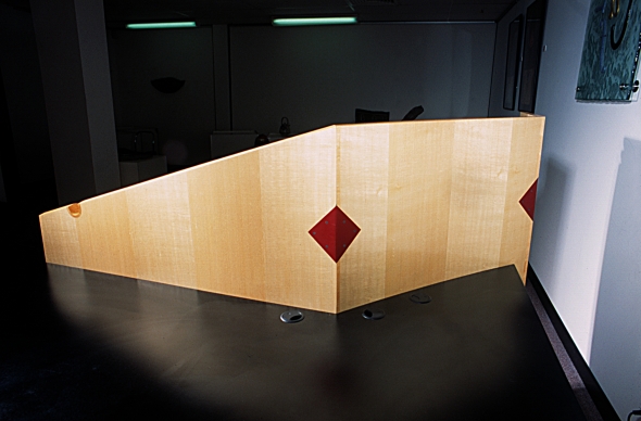 Reception Desk. Silver ash, silver ash veneer, solid core laminate, anodized aluminium.